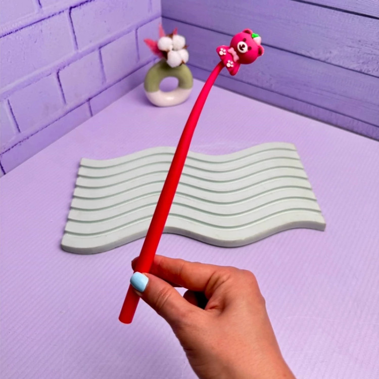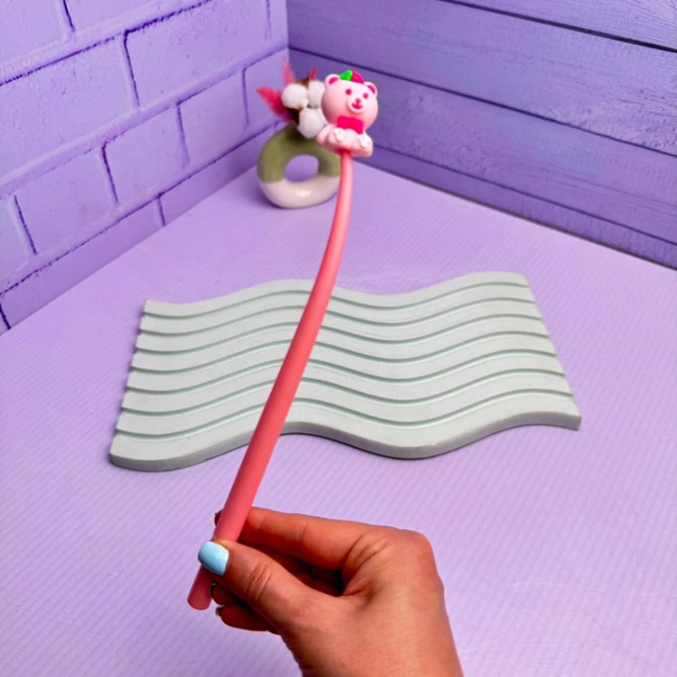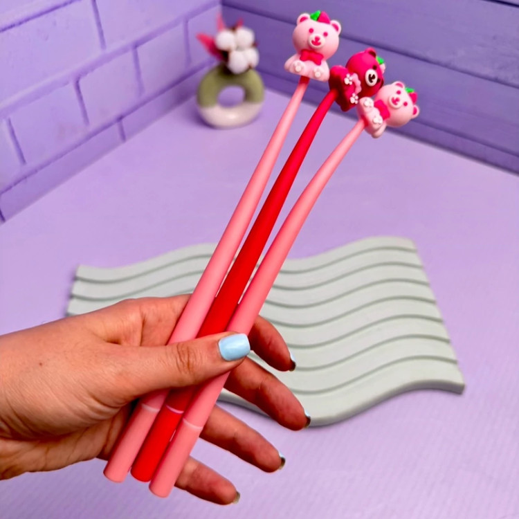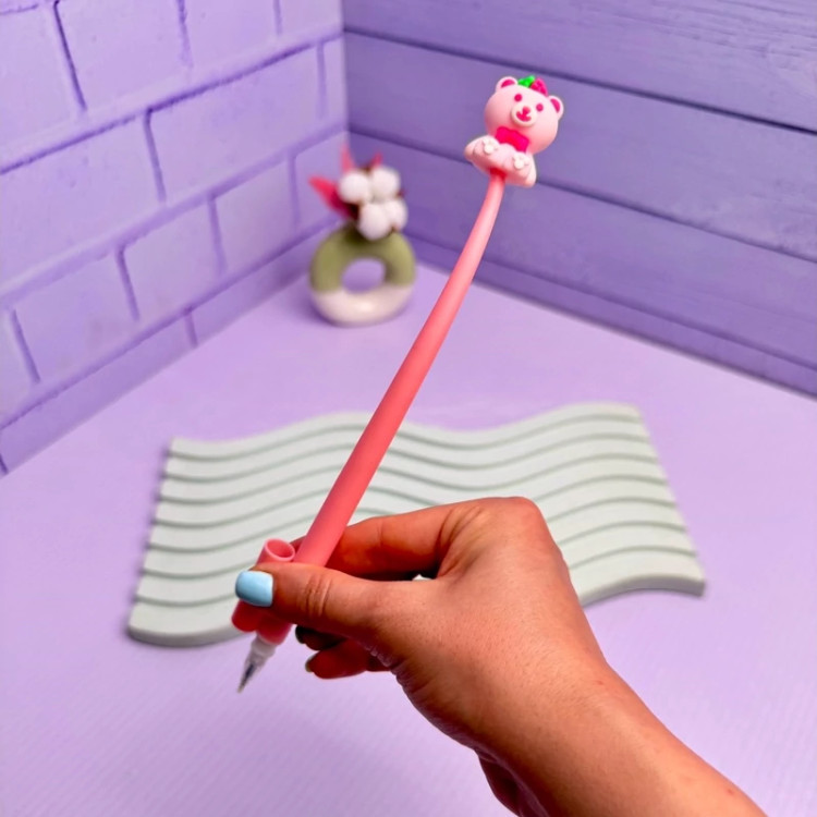 خودکار ژله ای سیلیکونی لرزون طرح خرس در دو رنگ سرخابی و صورتی رنگ جوهر:آبی وقتی باهاش مینویسید عروسکش تکون میخوره
