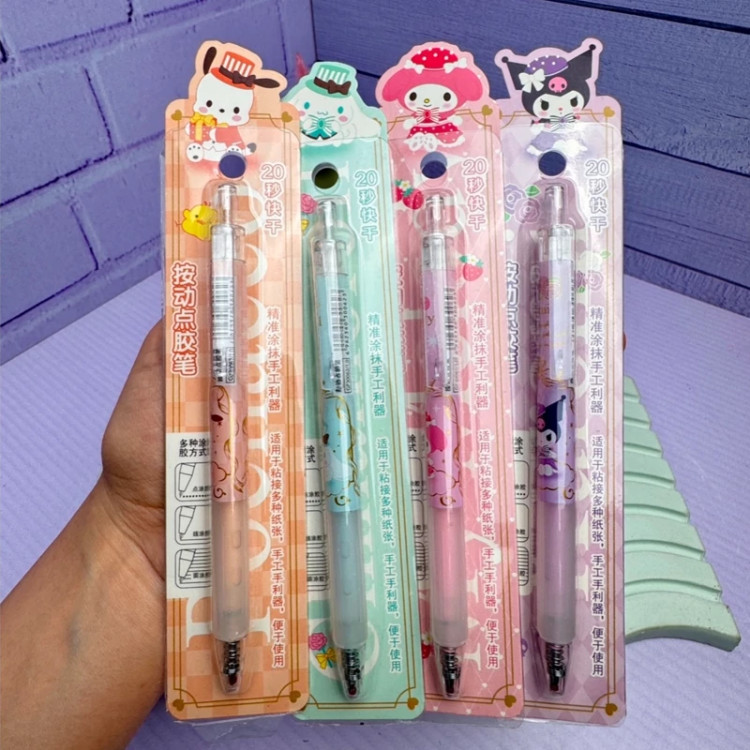 چسب خودکاری طرح سانریو کرومی و دوستان کیفیت عالی مناسب برای ریزه کاری و کاردستی چسب مایع خیلی راحت و بدون کثیف کاری میتونید کاردستی های زیبا درست کنید راحت تو جامدادی جا میشه و مثل خودکار میمونه