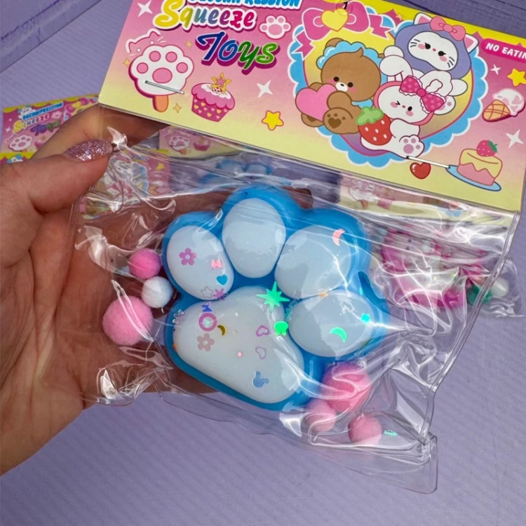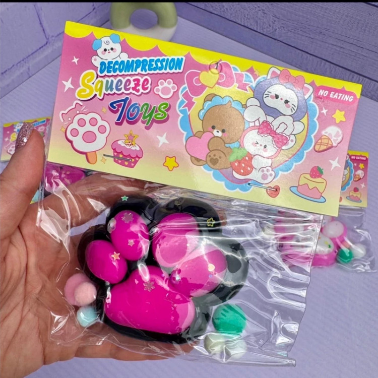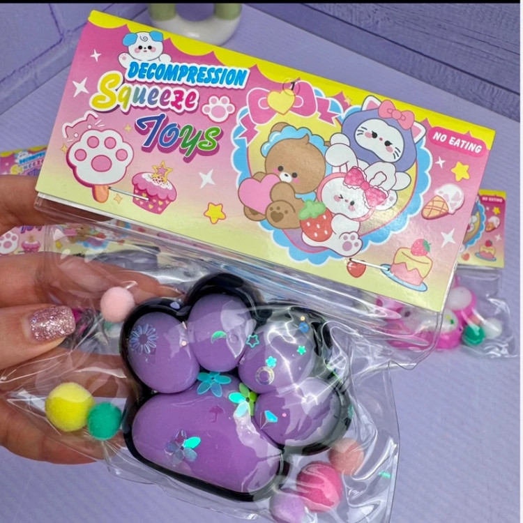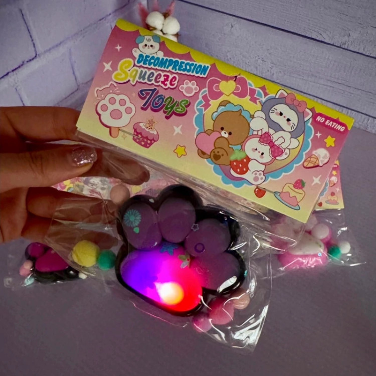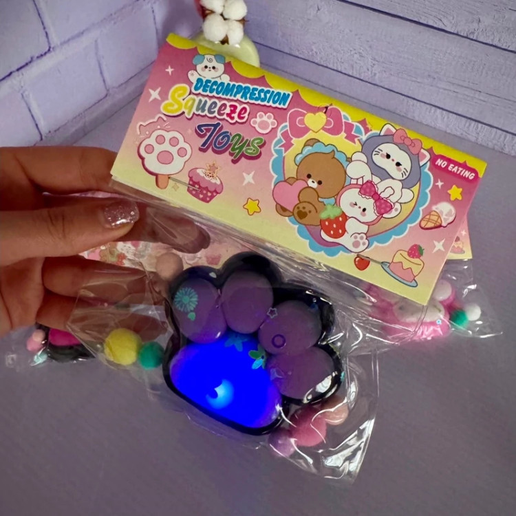 نرمالو اسکوئیشی طرح پنجه چراغ دار ضد استرس چراغ داره وقتی فشارش بدید یا روش بزنید چراغش روشن میشه و خودش بعد چند ثانیه خاموش میشه موجود در چهار رنگ برای کاهش استرس،سرگرمی و دست ورزی کودکان عالیه هرچقد دلتون میخواد فشارش بدید هیچیش نمیشه😍💜 اگه یه مقدار پودر بچه یا آرد سفید بهش بزنید دیگه به هیچ جا نمیچسبه وچیزی هم بهش نمیچسبه😍😍 البته حالت عادی هم به دست نمیچسبه ولی با پودر خیلی خوب تر میشه😊😎