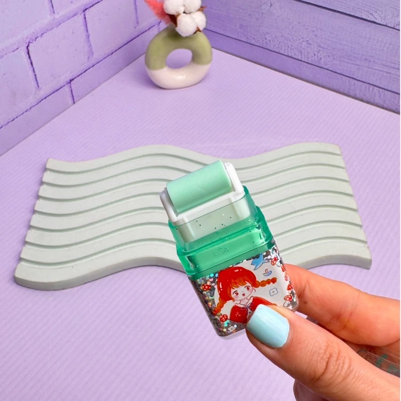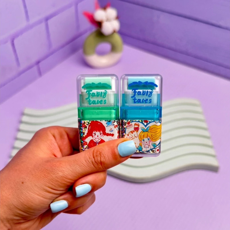 پاکن غلطک دار طرح دختر در دو رنگ سبز و آبی غلطک پاکن جهت جمع کردن براده های پاکن قاب دار هست و پاکن تو جامدادی سیاه و کثیف نمیشه