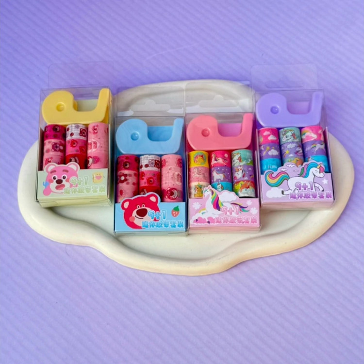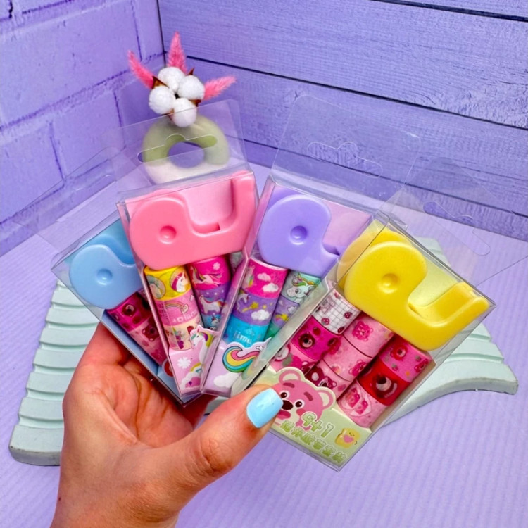 چسب واشی فانتزی همراه با پایه چسب هر بسته شامل 9 عدد چسب واشی همراه با پایه چسب فانتزی میباشد موجود در 4 رنگ پاستلی بنفش،صورتی،زرد و آبی مناسب برای دیزاین دفتر،کاردستی و …